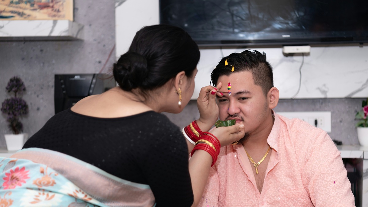 भाई दूज पर बहन भाई के तिलक करती हैं।