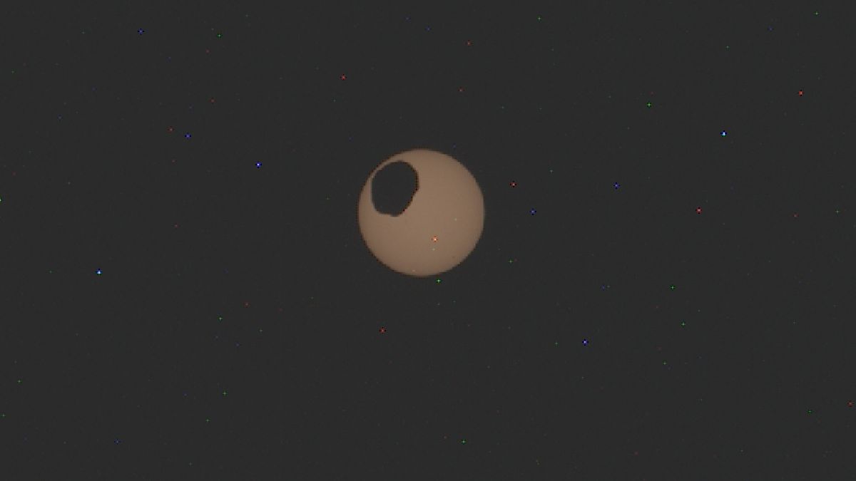 कैप्चर कर लिया। यानी वह मंगल ग्रह पर सूर्य ग्रहण वाली स्थिति थी। 8 फरवरी को ली गई तस्वीरों में आलू के आकार वाले फोबोस को सूर्य के सामने से निकलते हुए देखा जा सकता है। तस्वीर को मंगल ग्रह पर जेजेरो क्रेटर इलाके से लिया गया।