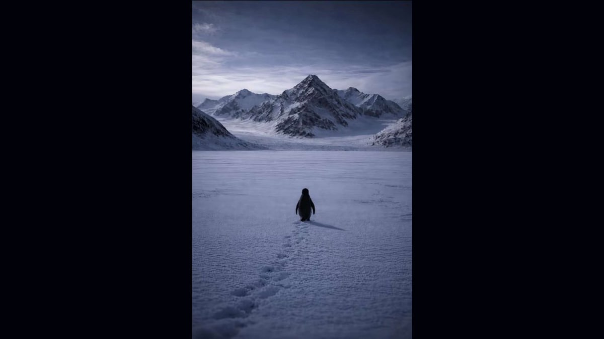 वीडियो में देखा जा सकता है कि एक पेंगुइन अपने साथी को छोड़कर अकेली राह पर निकल पड़ता है।